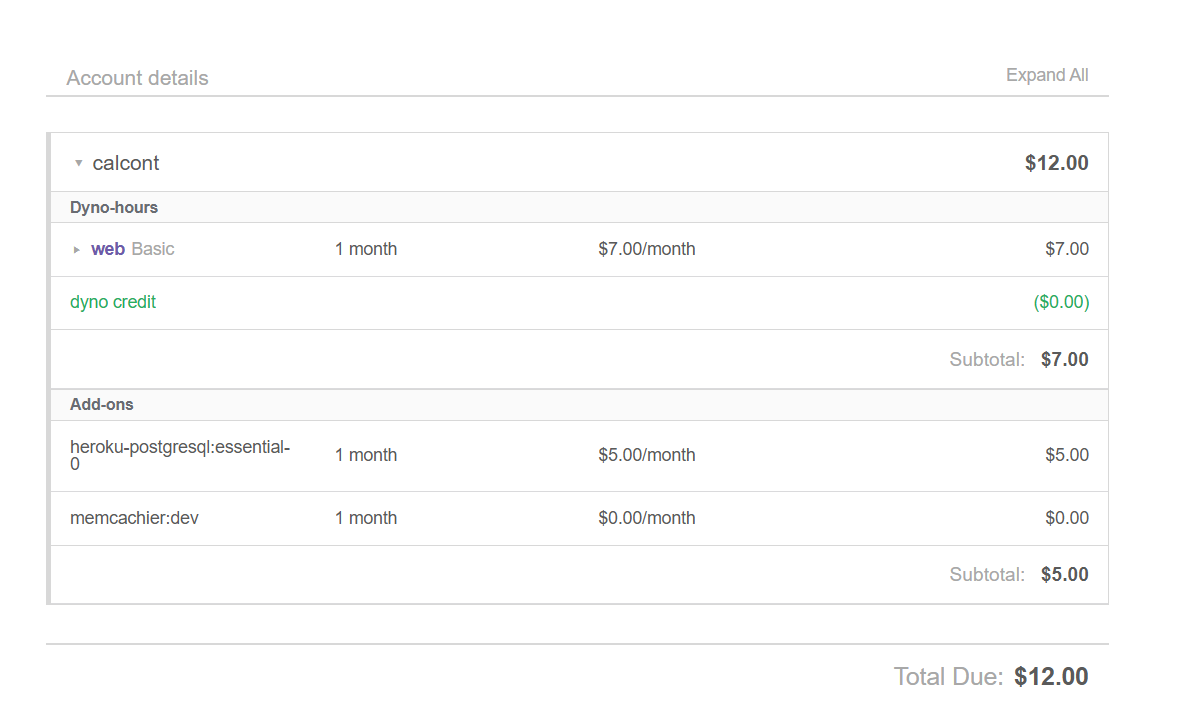 - $7/month: Heroku Dyno (limited RAM, not ideal for traffic spikes)